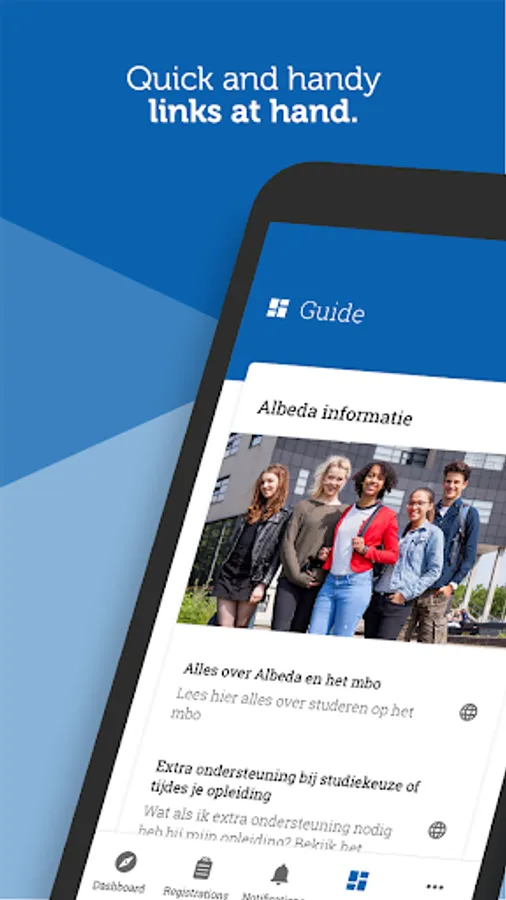 Welcome to Albeda is the app you can download and use if you have enrolled at Albeda. Are you already a student at Albeda? Then download the Mijn Albeda app, which is currently a PILOT for the Management support and Business administration & control specialist courses.