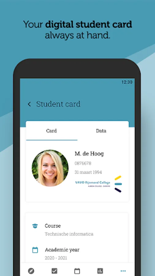 The VAVO Rijnmond College app is the official app for VAVO Rijnmond College students. Check your time tables, study results or digital student card and receive notifications. The VAVO Rijnmond College app displays the most important information for you.