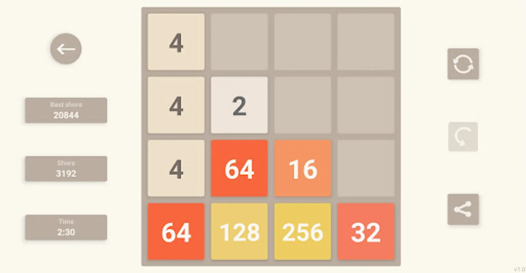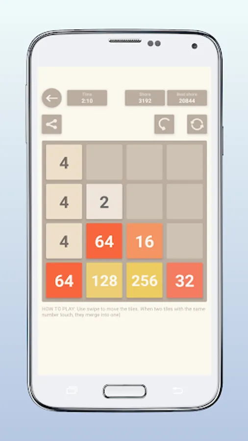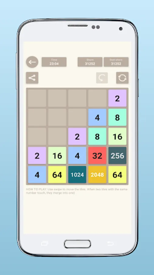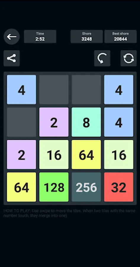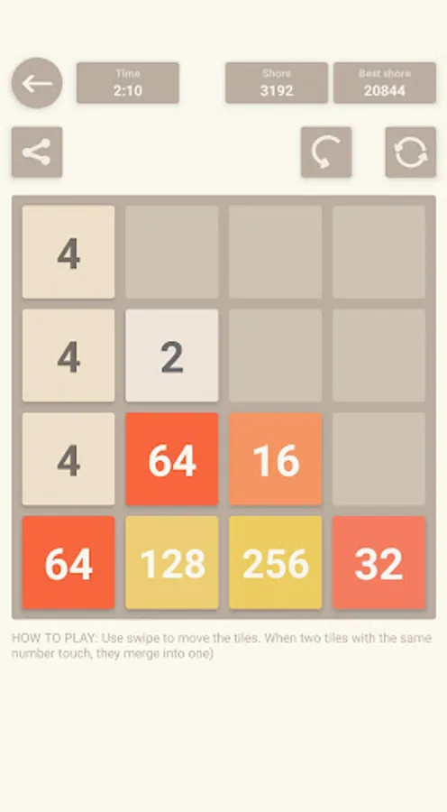 HOW TO PLAY: Swipe to move tiles. When two tiles with the same number touch, they merge into one). Go to tile 2048 and keep playing