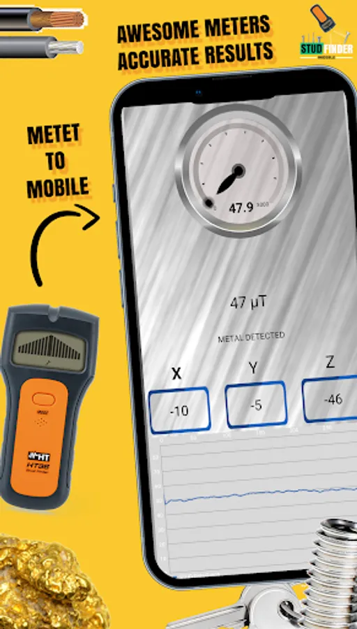 Stud finder, stud Scanner, and Wall Stud Detector App 2022 work perfectly on all Android smartphones with magnetic sensor and MF detection, open the free Metal Detector app and move it near any place where you have a stud. Looking for metal screw bolts, pipes, and wiring. If the input finder and metal detector app find any metal, it will also start looking at the detection meter to see the values. The Stud Finder App and stud detector app is a very helpful app and will make your day easier to find by connecting to walls and other places.