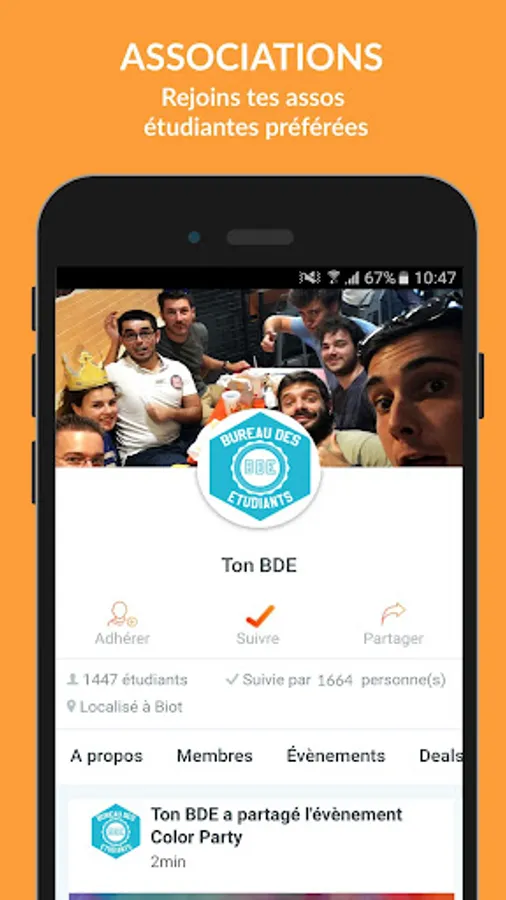 Join the community Studeal, am student associations that interest you and do not miss any event or any event of the year. Be immediately aware of everything happening on your campus!