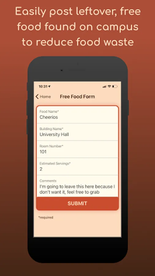 2. Using the Free Food Form, quickly post free food that is leftover from events, club activities, students moving out or any other social situations.