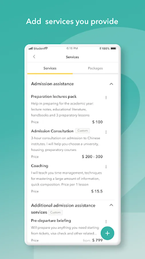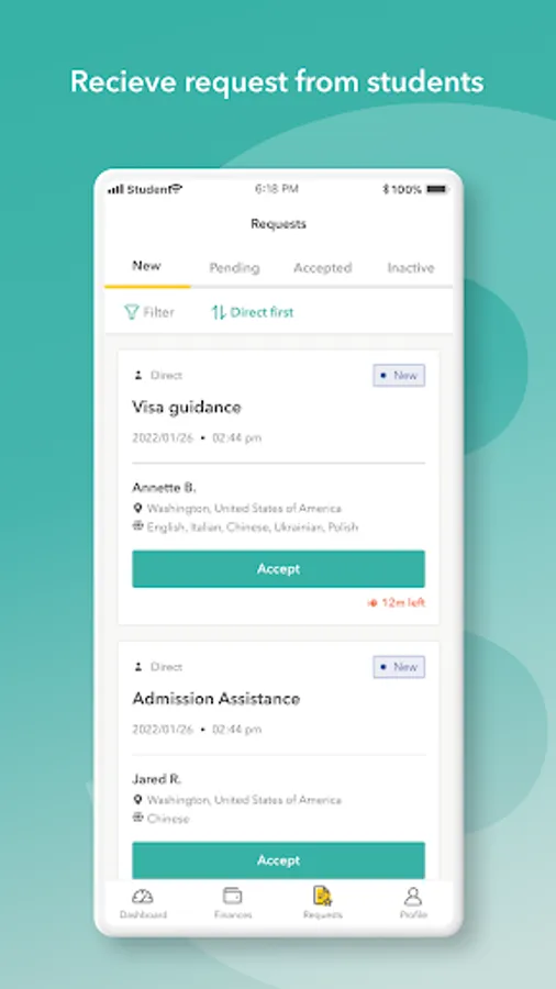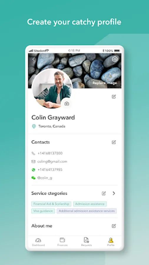 This app will help you list your services and find students who are looking for agents who have the expertise they need.