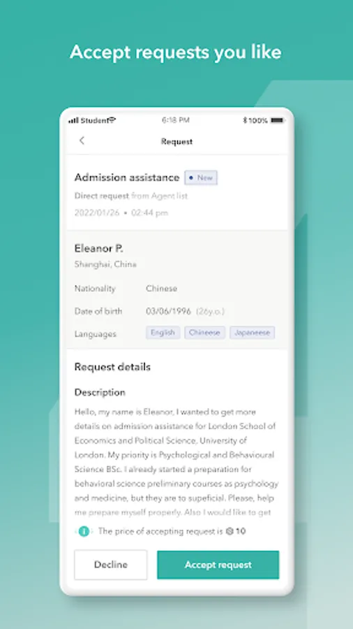 Our platform will make it easy for you to get in contact with students who are looking for agents like you, people who provide educational services like help with applying to university, securing student visas or applying for scholarships.