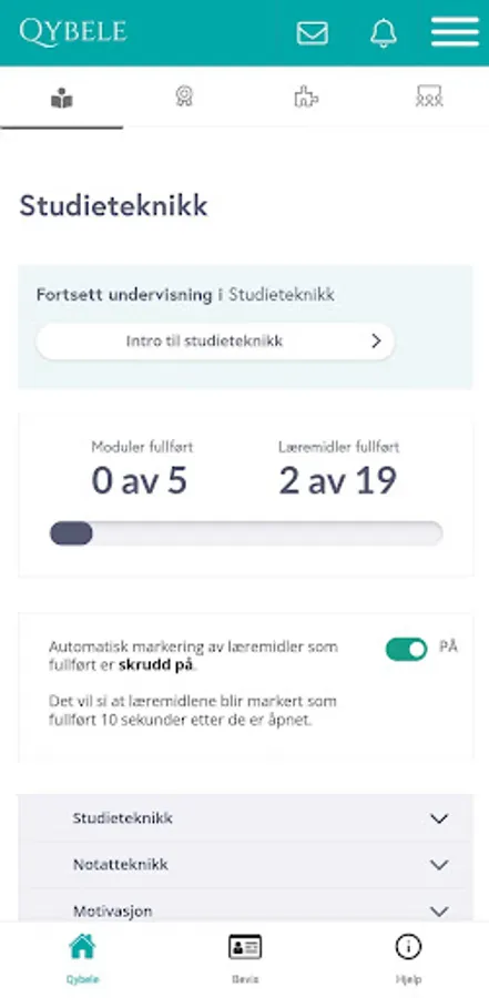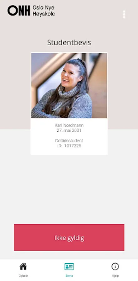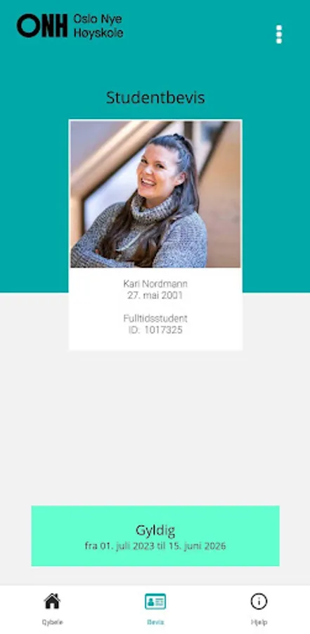 Qybele app with learning portal and student ID for students at ONH (Oslo Nye Høyskole) and NTech (Norwegian School of Technology).