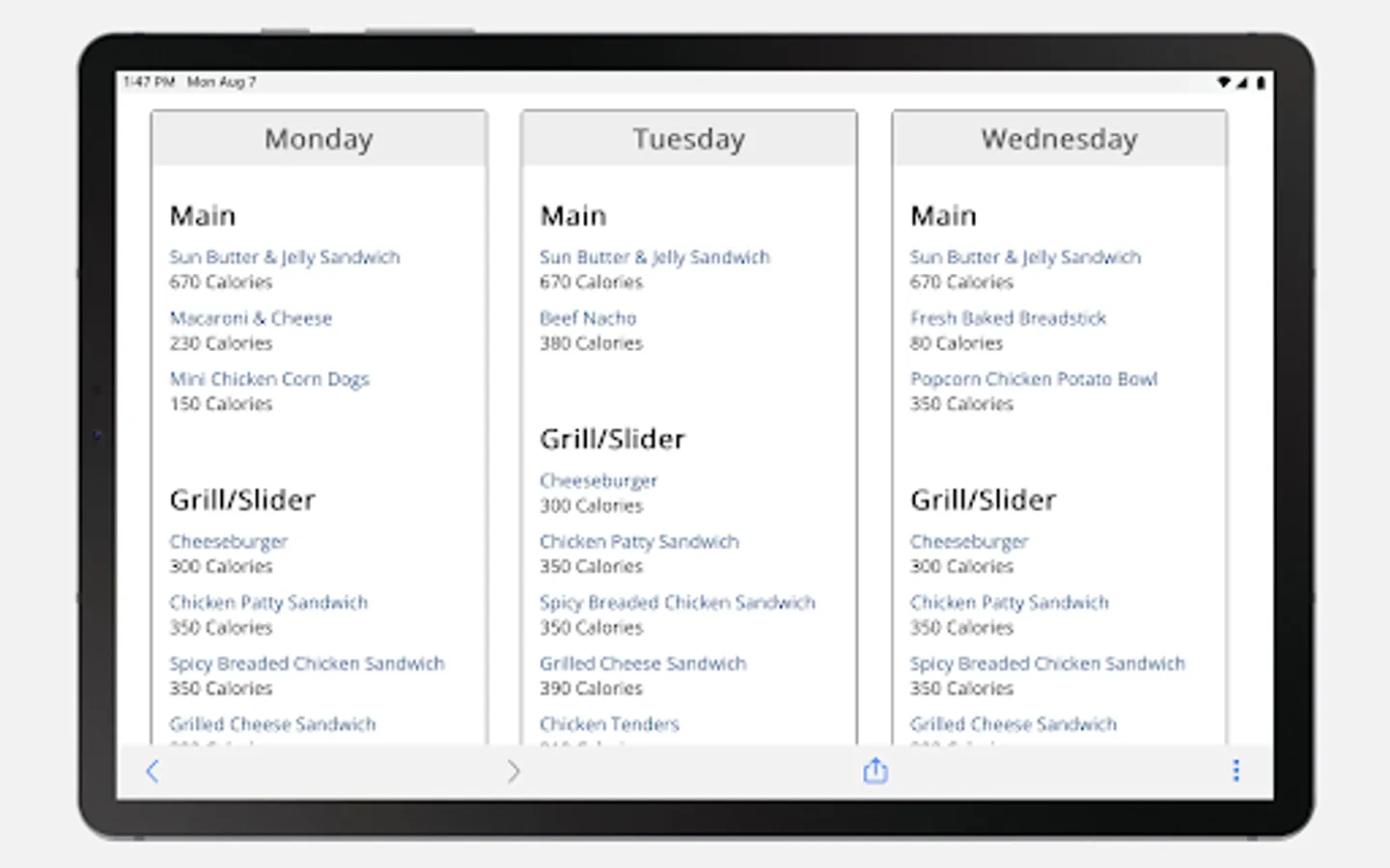 School menus and nutrition info are just a tap away with the SchoolDish mobile app.