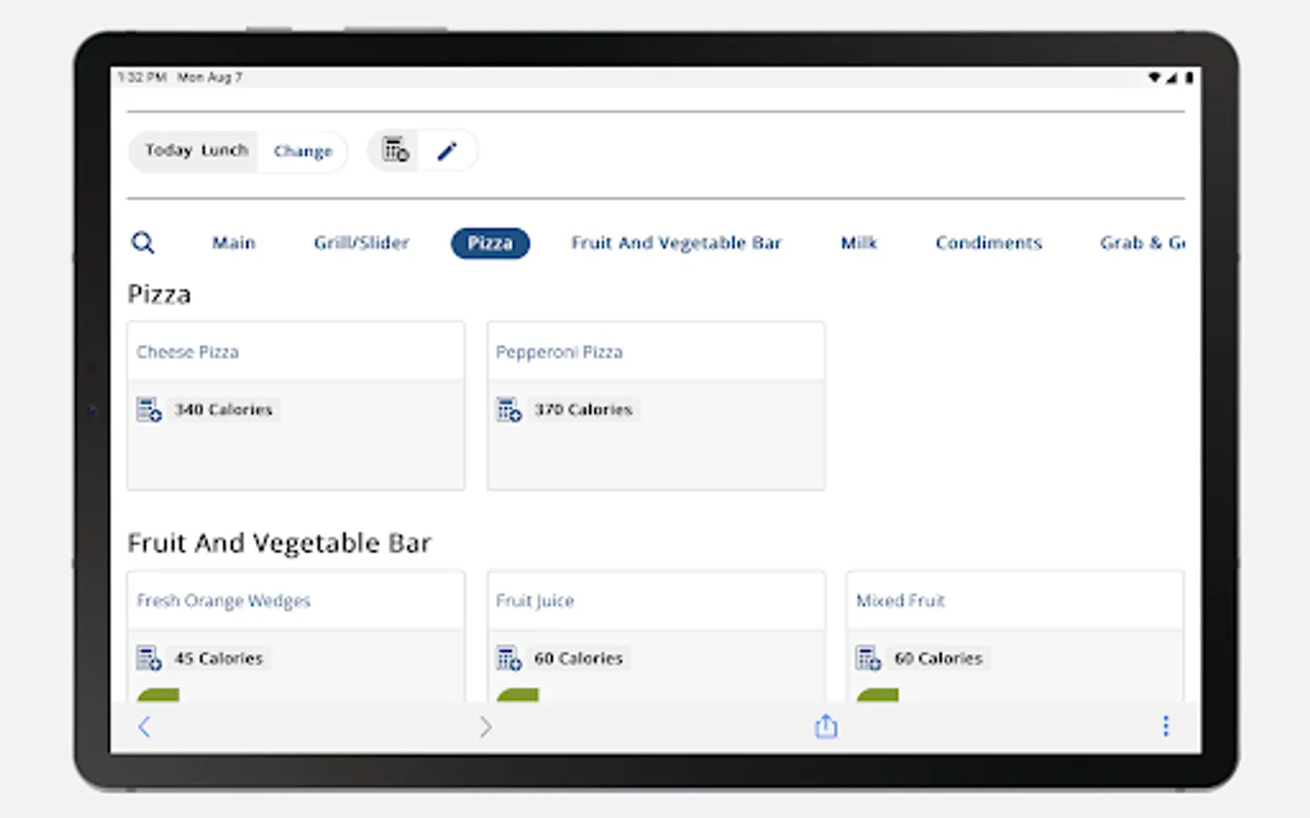 - Our interactive menus let you see what’s being served for breakfast and lunch at your child's school each day. Tap on each item to find full nutrition info and ingredients. You can also filter the menu to find vegetarian and vegan options, avoid allergens, and much more.
