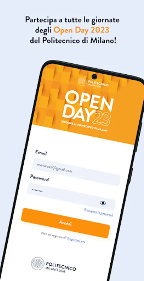 Official app of the three-year and single-cycle degrees Open Day for future students of the Politecnico di Milano.