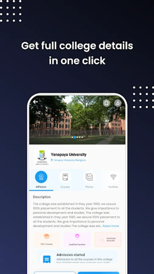 Our app provides entire details of all colleges and universities, giving you an insight into the quality of education and facilities provided. This helps you make an informed decision about the college you want to attend.