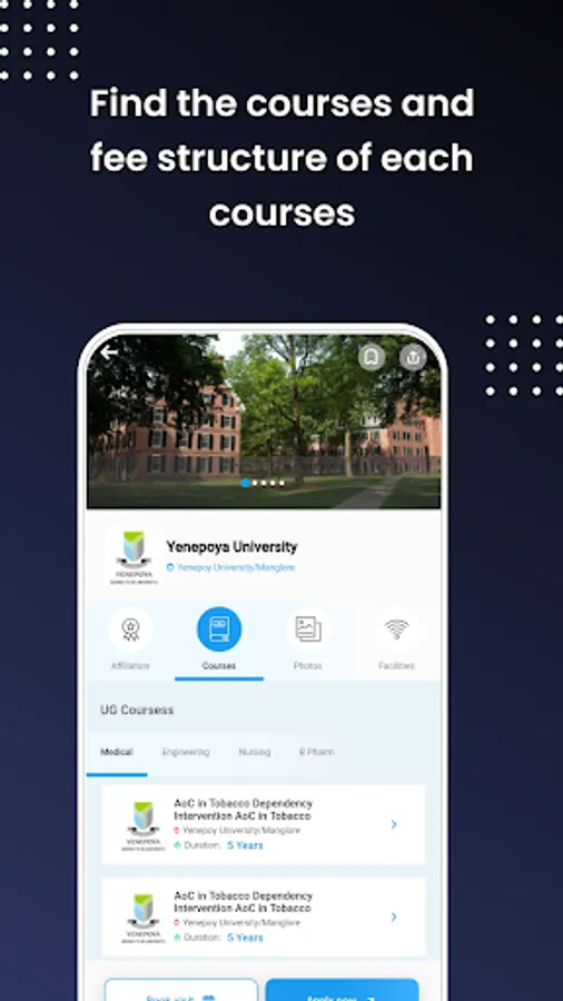 Our app offers you the convenience of booking seats and paying fees online. You can select a college and course of your choice and make a booking by paying a nominal fee. Once you have booked a seat, you can pay the college fees online, eliminating the need for physical visits to the college or university. This saves you time and money, making the admission process hassle-free.