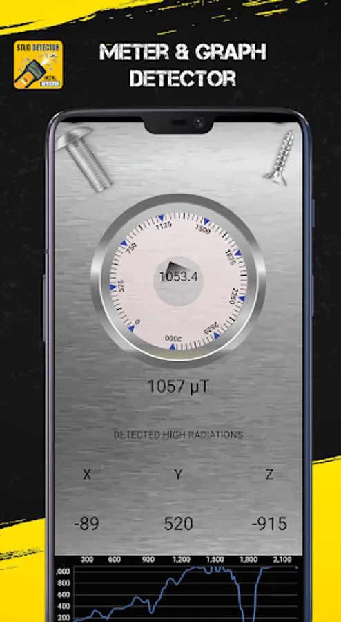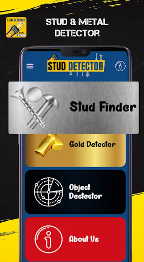 Wall Gold Detector – Metal Detector app 2022-23 is a wall stud finder application for android which helps you to detect the precious metal and gold near you by measuring the magnetic field value using magnetometer sensor of your mobile phone. In this Wall Stud Detector – Gold finder, if any walls metal, stud or gold is near your device, this wall stud detector – gold finder application shows the value of magnetic field with a beep alarm. The value of magnetic field will increase which is best for wall Stud finder and Metal Detector. This useful stud detector tool uses the magnetic sensor built-in your mobile device and shows magnetic field level in μT (microtesla). You can also change the sensitivity and sound effect of this wall Stud Finder application.