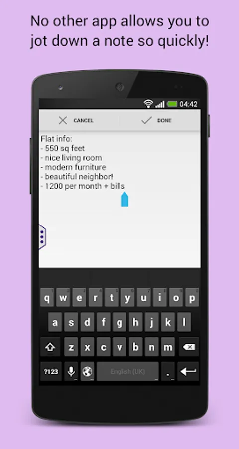 Forget the cumbersome dance of switching apps! Who has time for that? Berrynotes is always there at your side. But Berrynotes won't be in the way and can be moved to where you want, it can even be hidden.