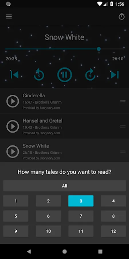 Little Tales can let you play a specific number of audio tales: just select a limit and the app will stop automatically.