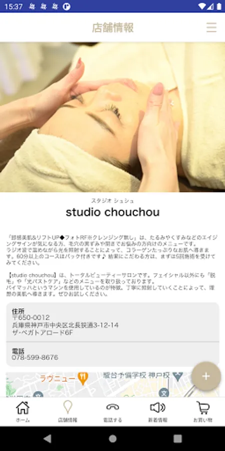 The map of the store is displayed and it is linked with the map app, so you can easily find it even when you visit the store for the first time.