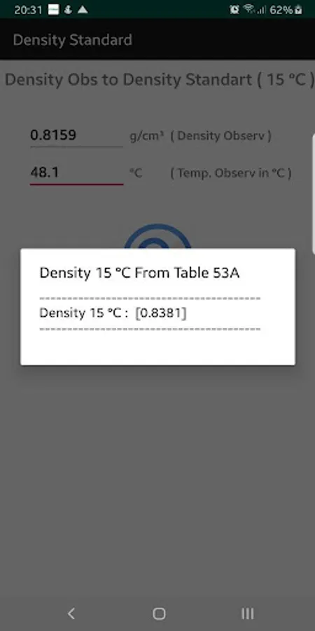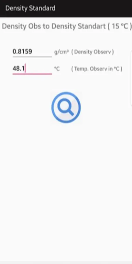 This app is for convertion density observ to density 15˚C with T53A and Formula.