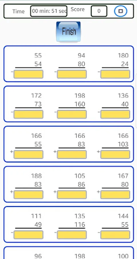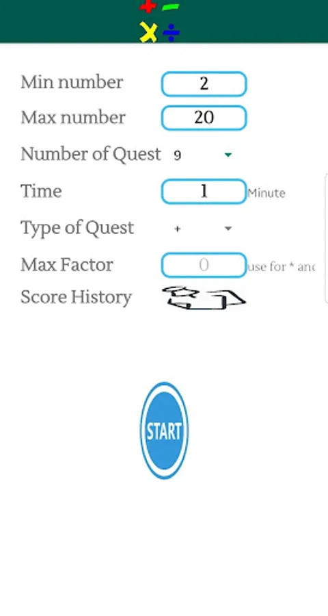We can set question plus, minus, plus and minus, multiplied by, divided, total of question and max number for calculation can be adjusted on the option page.