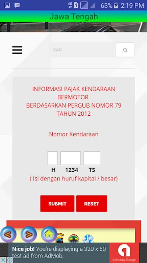 Vehicle tax check application is a free android application that is about tax information on two-wheeled and four-wheeled motor vehicles, be it cars, motorbikes, etc. based on data from samsat or dispenda.