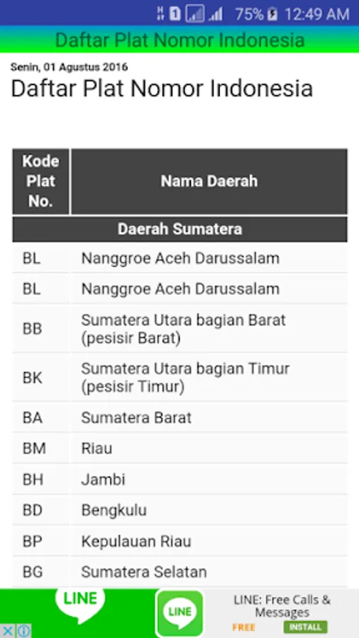 With a list of Indonesian vehicle number numbers, it will make it easier for users to see