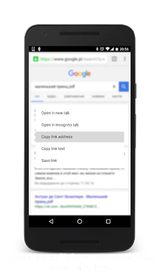 Copy link to the file (long press on link, then select “copy link location”) and paste link into eBooker (long press on field with “http://” hint)