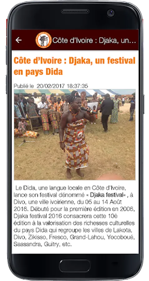 Organized by the International Committee Djaka Festival (FLIC) in the month of August of each year, it aims to be an answer to the question of the existence of Dida and Godié culture.