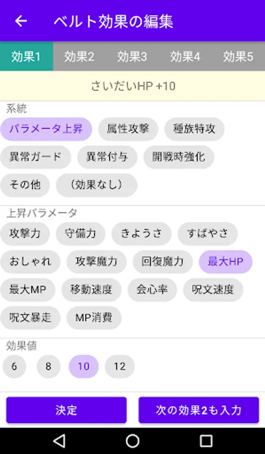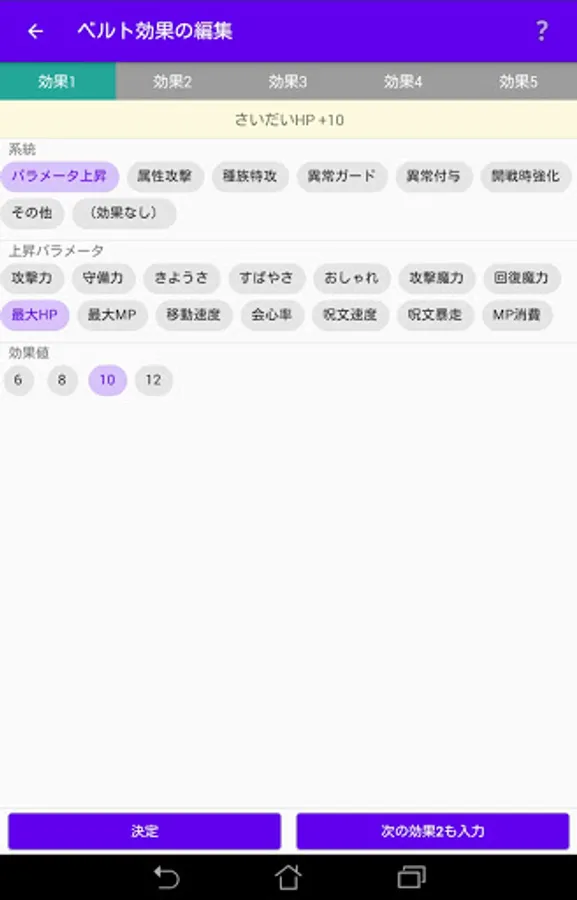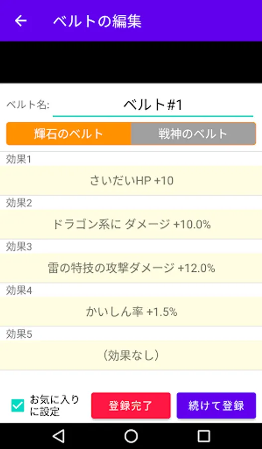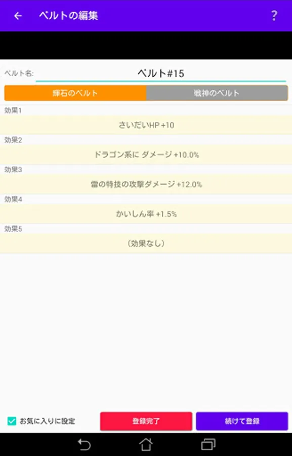 ・ In addition to the effect, you can set "belt name" and "favorite".
