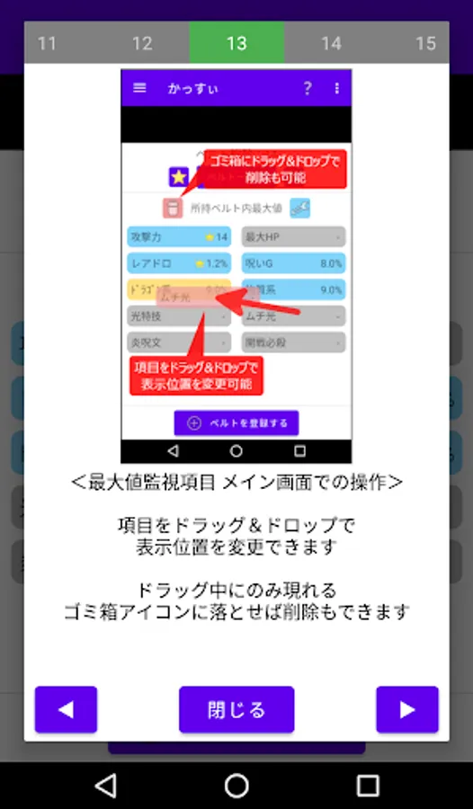 ・ The maximum value of the specified effect in the possession belt is automatically displayed on the main screen.