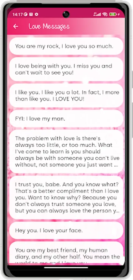 ♥ Love Messages is a nice android application. it contains collection of Special Love Messages - Love SMS Romantic Messages - Fall in Love Quotes and Propose Messages for your LOVE.