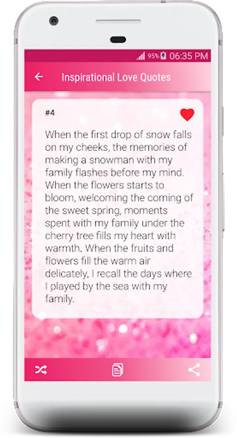 ★ Add a quote to your Favorites by clicking on the Heart icon. You can then select the Favorites quotes from the menu for later viewing.