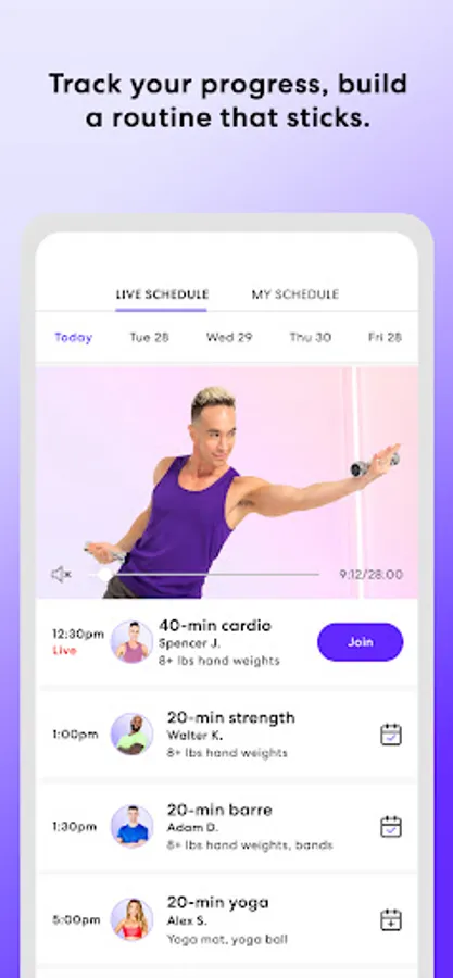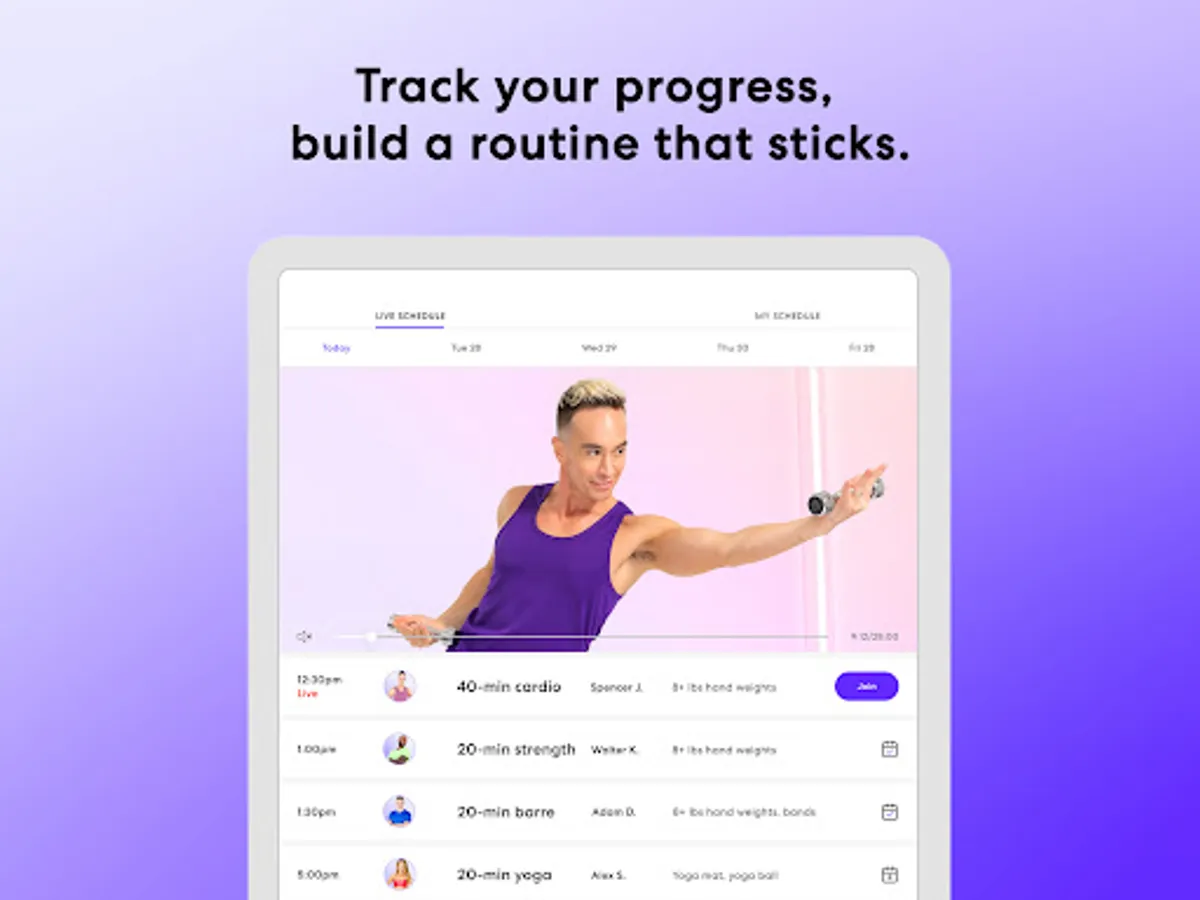 20+ CLASS TYPES: Bye, boring exercise. Build your foundation with strength, sweat it out with cardio, and unwind with recovery. Filter classes by duration, equipment type, body focus, impact, level, or music type to find your perfect match.