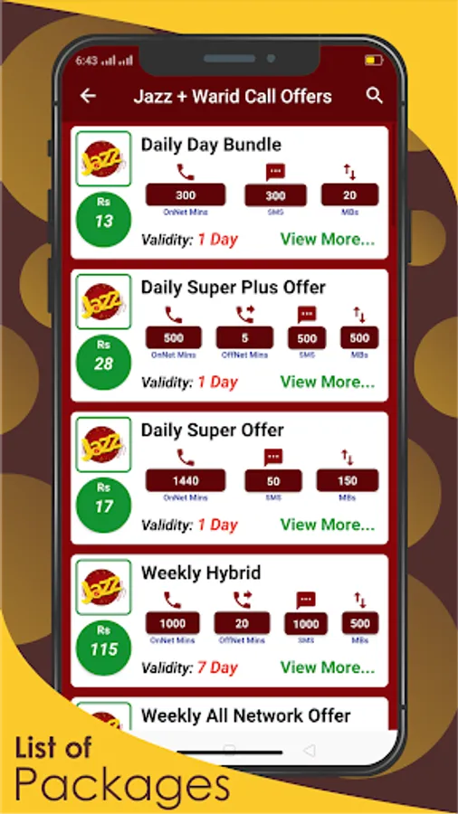 Now you don't need to remember lengthy and difficult codes to activate packages. All Network Packages 2023 provides call, sms and internet and other packages with complete information. This app contains packages of all major mobile networks available in Pakistan such as Jazz, Telenor, Ufone and Zong. This app also provides package information about PTCL broadband, 3g/4g devices and smart tv.
