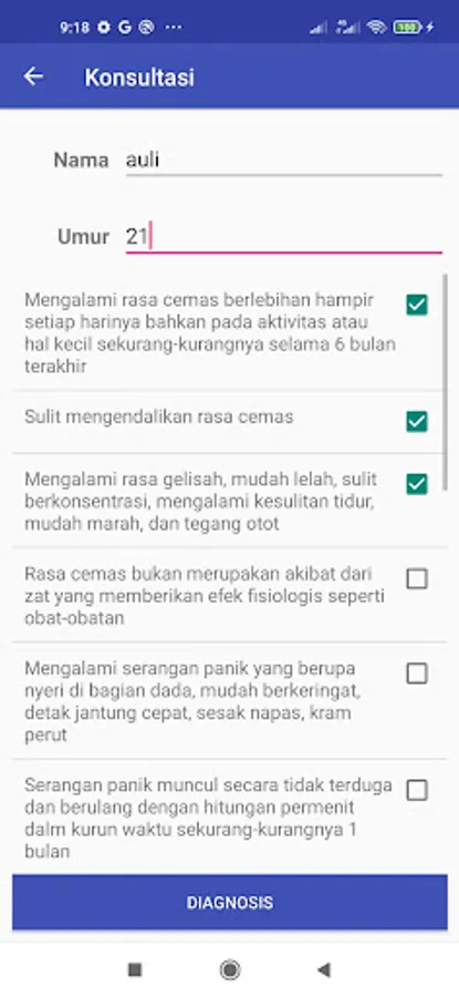 Anxiety disorder expert system is an expert system application where there are symptoms that the user can choose for consultation, as well as several features including notes, meditation, and community.