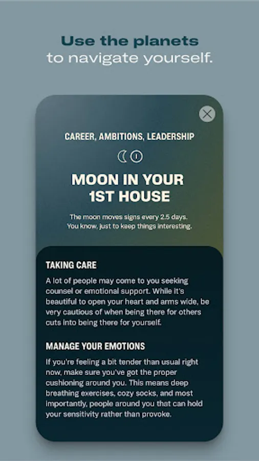 get your to-do list from the stars, with personalized self-care tips based on how the planets in the sky align with your unique birth chart. it’s like if a horoscope had homework.