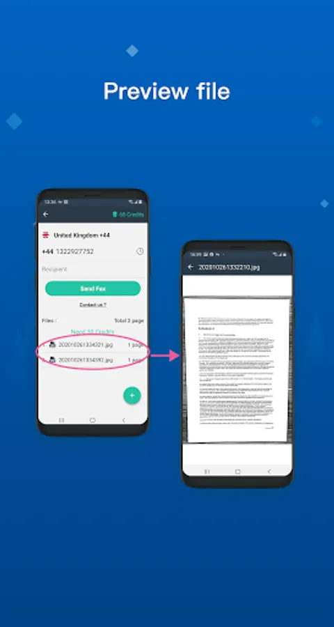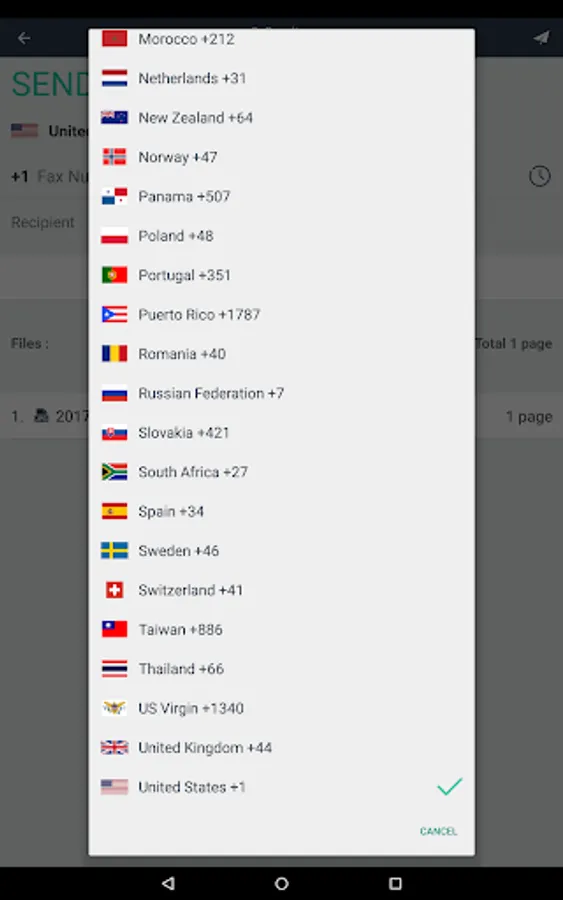 Top Fax sends fax files or documents , including PDF files, stored on your Android phone or tablet to any fax number in the USA/Canada and many international locations. Send a fax from your phone as simply as selecting a file and entering a fax number.