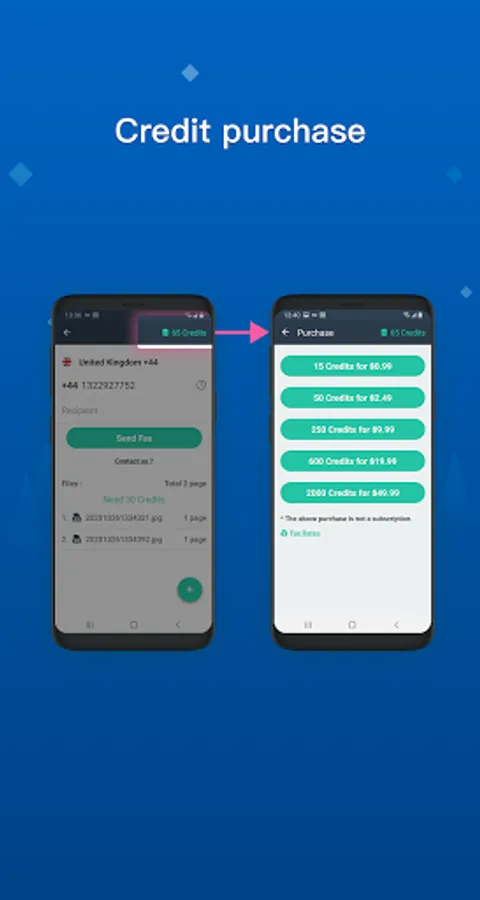 After subscribing to a number, you need to purchase a credit balance to receive faxes. There is an additional charge for receiving faxes. US and Canadian numbers receive 10 credits per page and 15 credits per page for other countries and regions. The more you buy, the cheaper the price. , We offer 15 credits 0.99 per page, 50 credits $2.49, 250 credits $9.99, 600 credits $19.99, 2000 credits $49.99, the specific price depends on how much you buy.