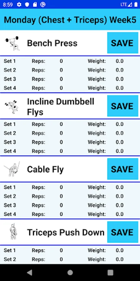 -Ability to save and track data about your weight and the number of repetitions for each performed exercise;