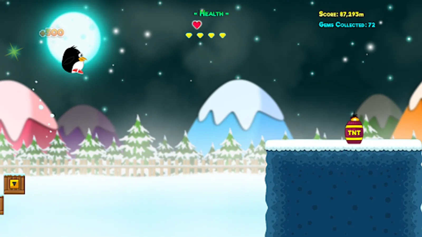 - All you have to do is get as far as you can, but watch out for the crates and explosive TNTs! Penguins can't fly, so use your jumps wisely!