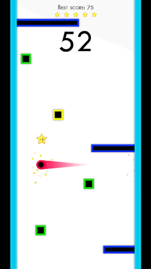 Collect stars to increase your score. (Collect 5 in a row to increase your score by 5 and become invincible for a short time.)