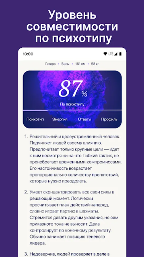 Compatibility of personalities, values and beliefs is a key factor for a happy and healthy relationship, and our unique mask shows the compatibility percentages for these parameters.