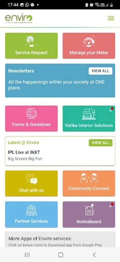 enviro mobile app is developed by Vatika Group. The application gives members direct access to the latest updates and happenings at enviro. Key feature of the application is the “Client Service Cell” where members can escalate service requests by click of a button.