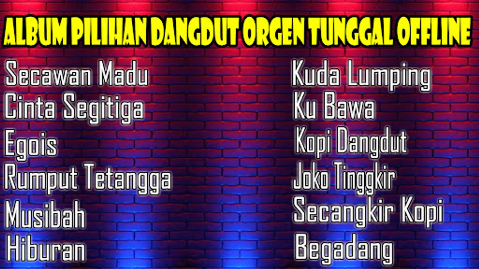 The latest Single Offline Dangdut Orgen Music Player application is made with a fresher appearance so that it is easy to use every day. The collection of Dangdut Single Orgen Songs Complete Offline is always updated with the latest old single Orgen songs. Don't miss it to get the Complete Single Orgen Dangdut Song. Immediately download and play this Offline Single Orgen Mp3 Application.