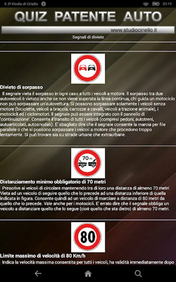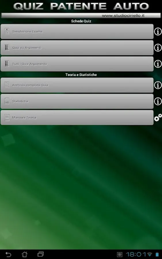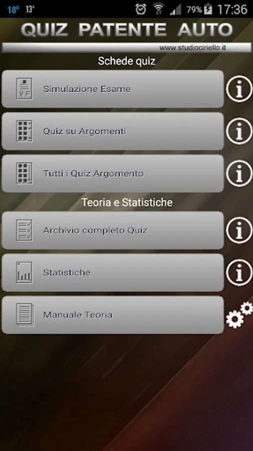 The best App for the license examinations with the same ministerial examination quiz (the same questions real exam) with integrated and MANUAL THEORY EXPLANATION OF ERRORS. It does not require internet connection or registration to the driving school for full functionality.