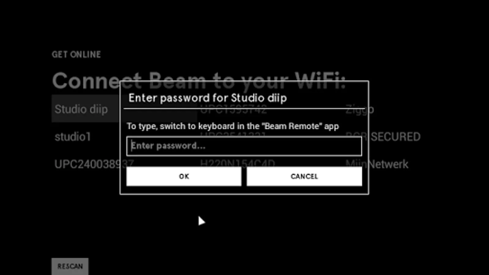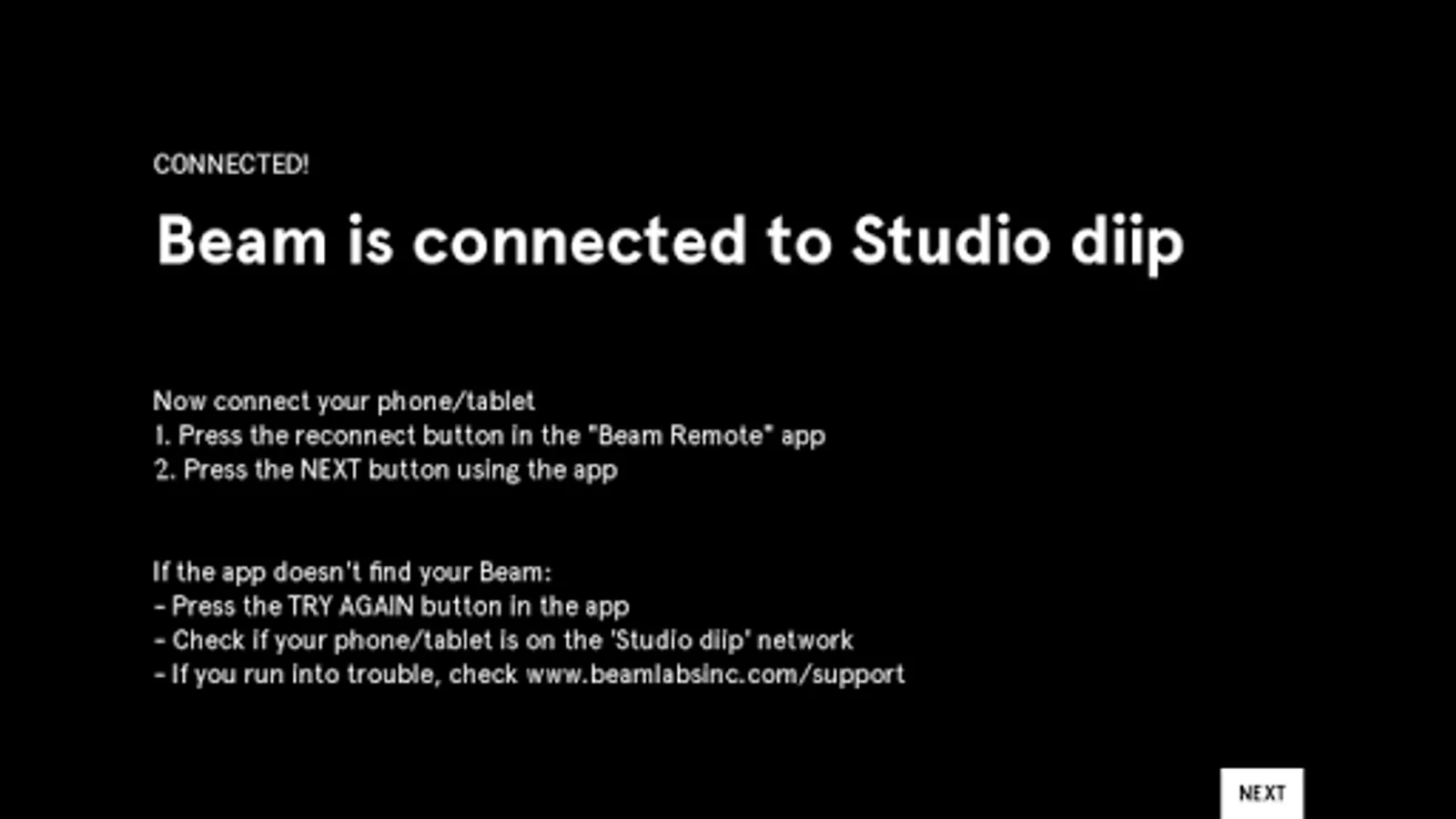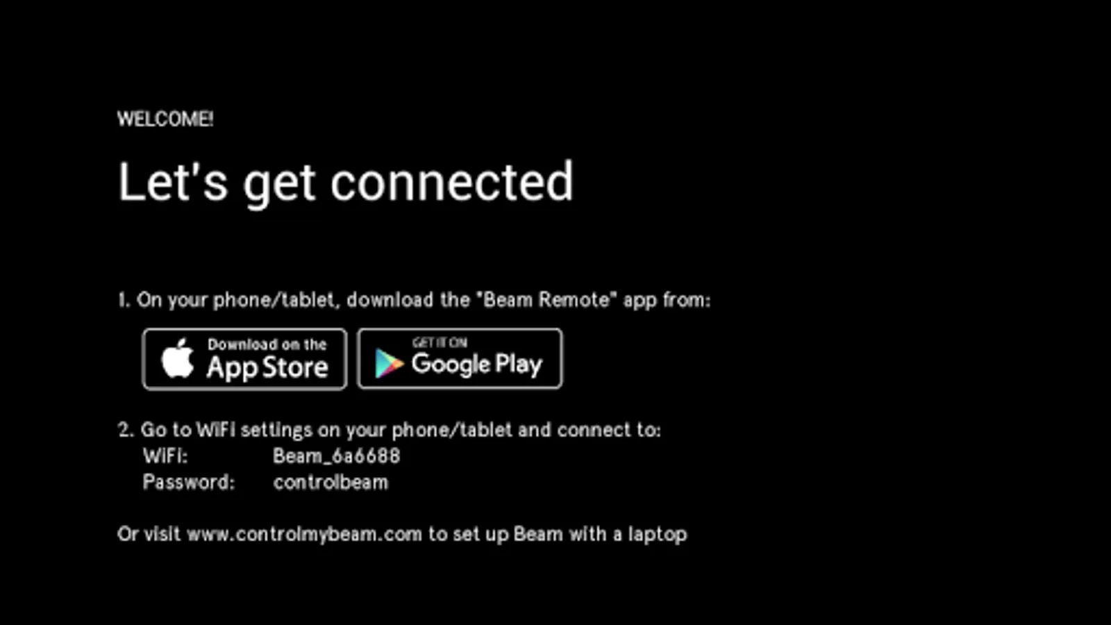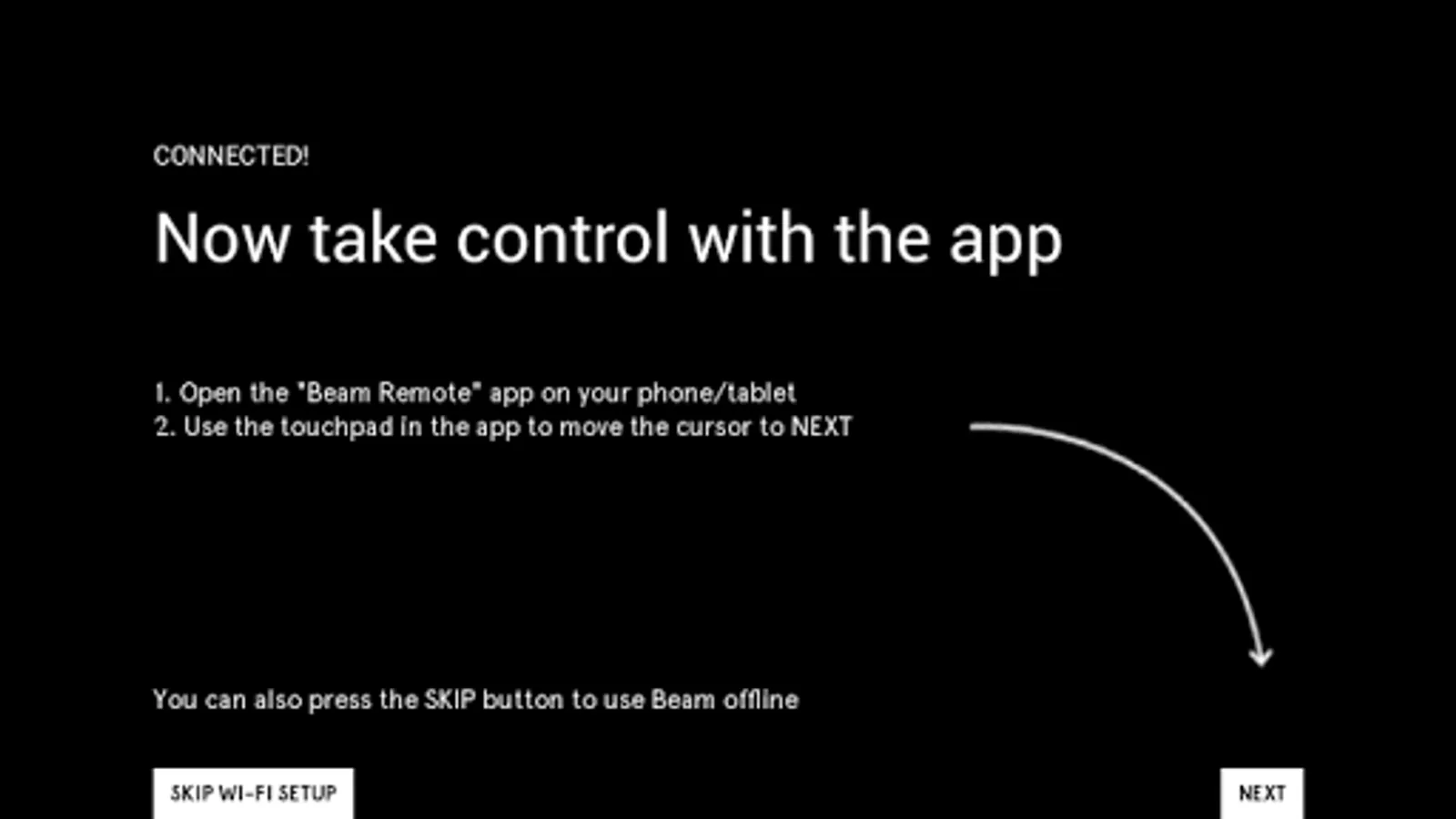 Beam WiFi Setup guides you through the steps to connect Beam to your local WiFi network.