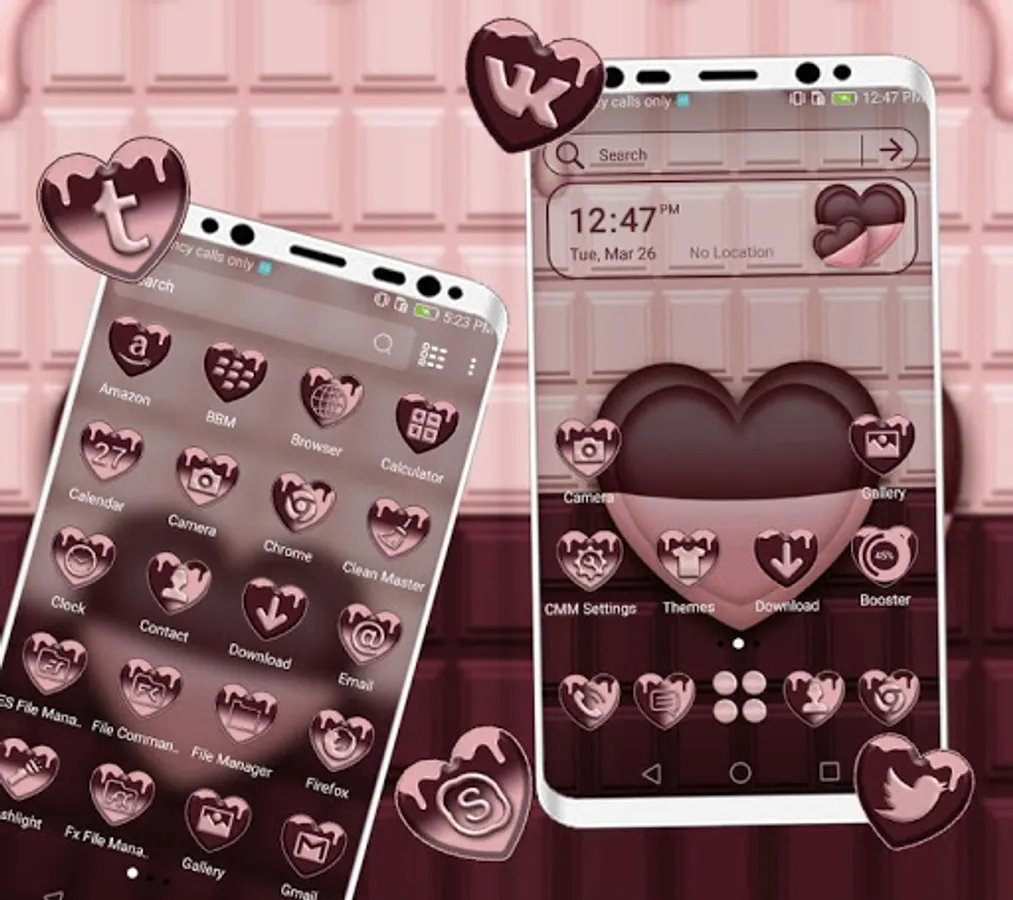 You can personalize your Android phone or tablet with our amazing launcher theme, Chocolate Heart