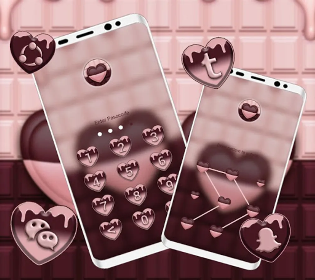 ☞ This Chocolate Heart Theme also have lock screen for extra protection with beautiful lock style to make your phone more beautiful