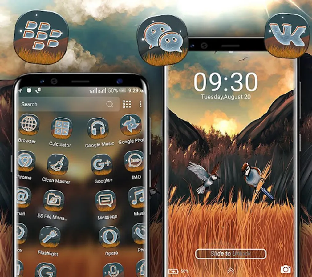 You can personalize your Android phone or tablet with our amazing launcher theme, Sparrows Art