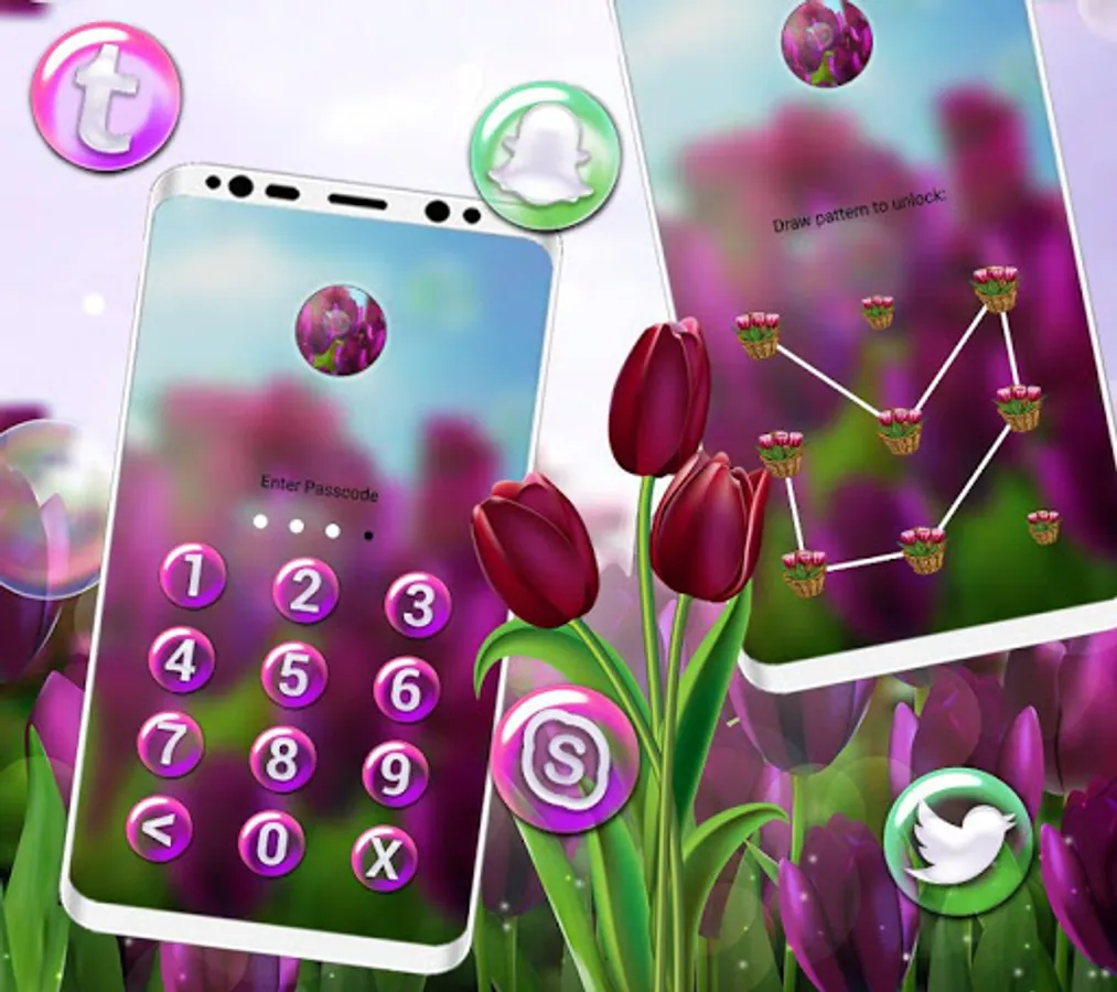 ☞ This Tulip Flower Theme also have lock screen for extra protection with beautiful lock style to make your phone more beautiful