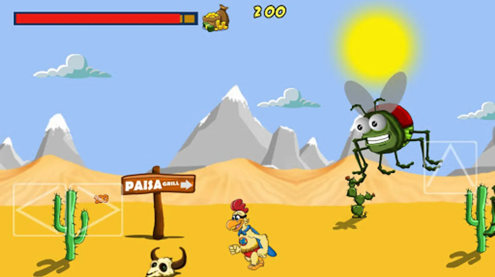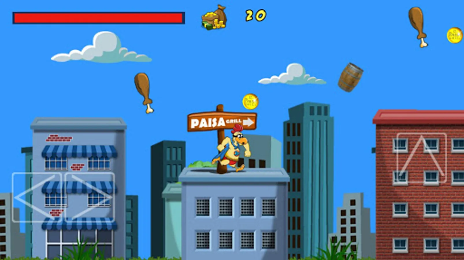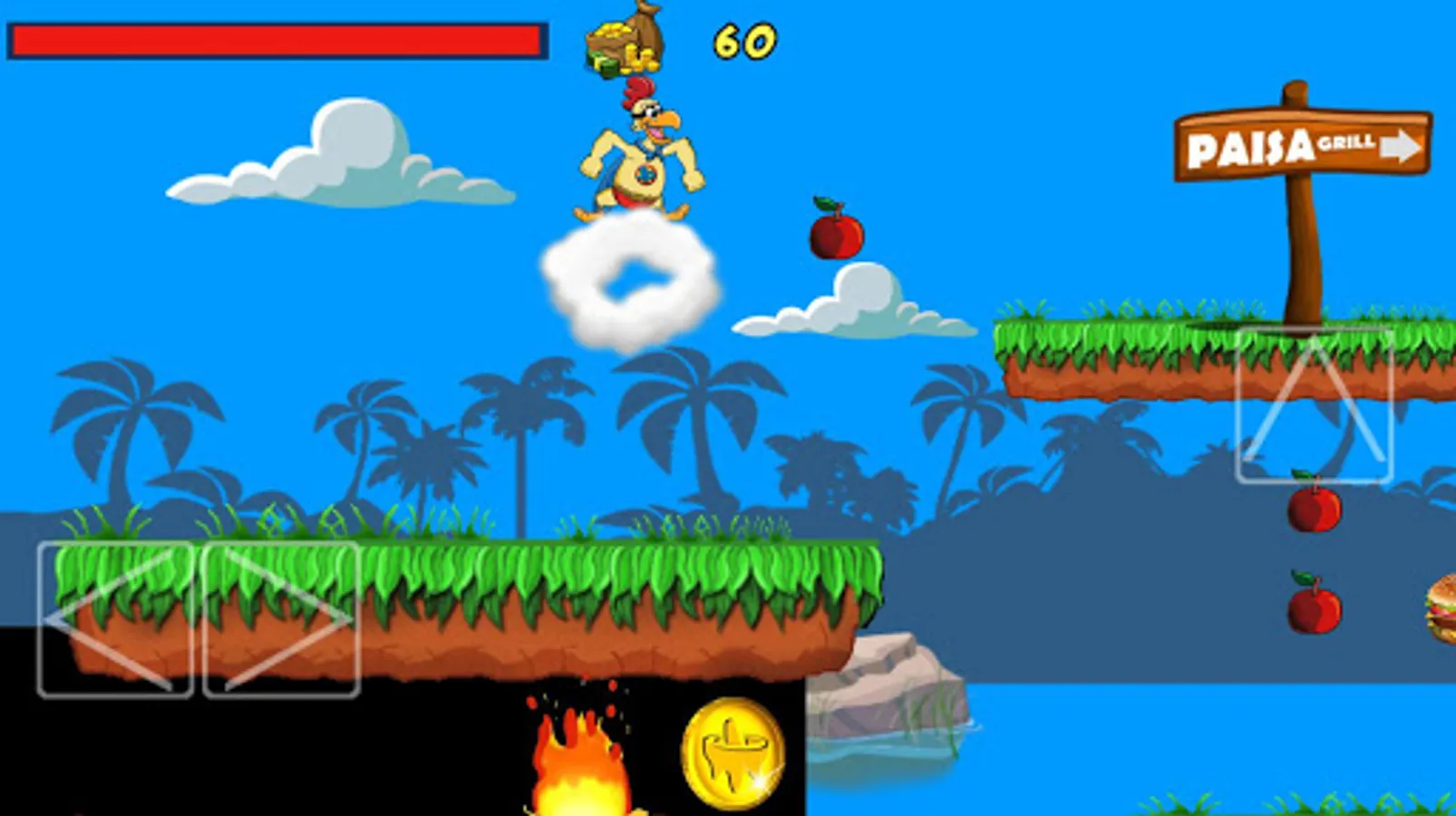 SuperPollo intenta llegar a su trabajo en el paisa grill, pasando mil obstaculos, un divertido juego de plataformas en el que tienes que superar niveles para llegar hasta el final de la aventura del superpollo