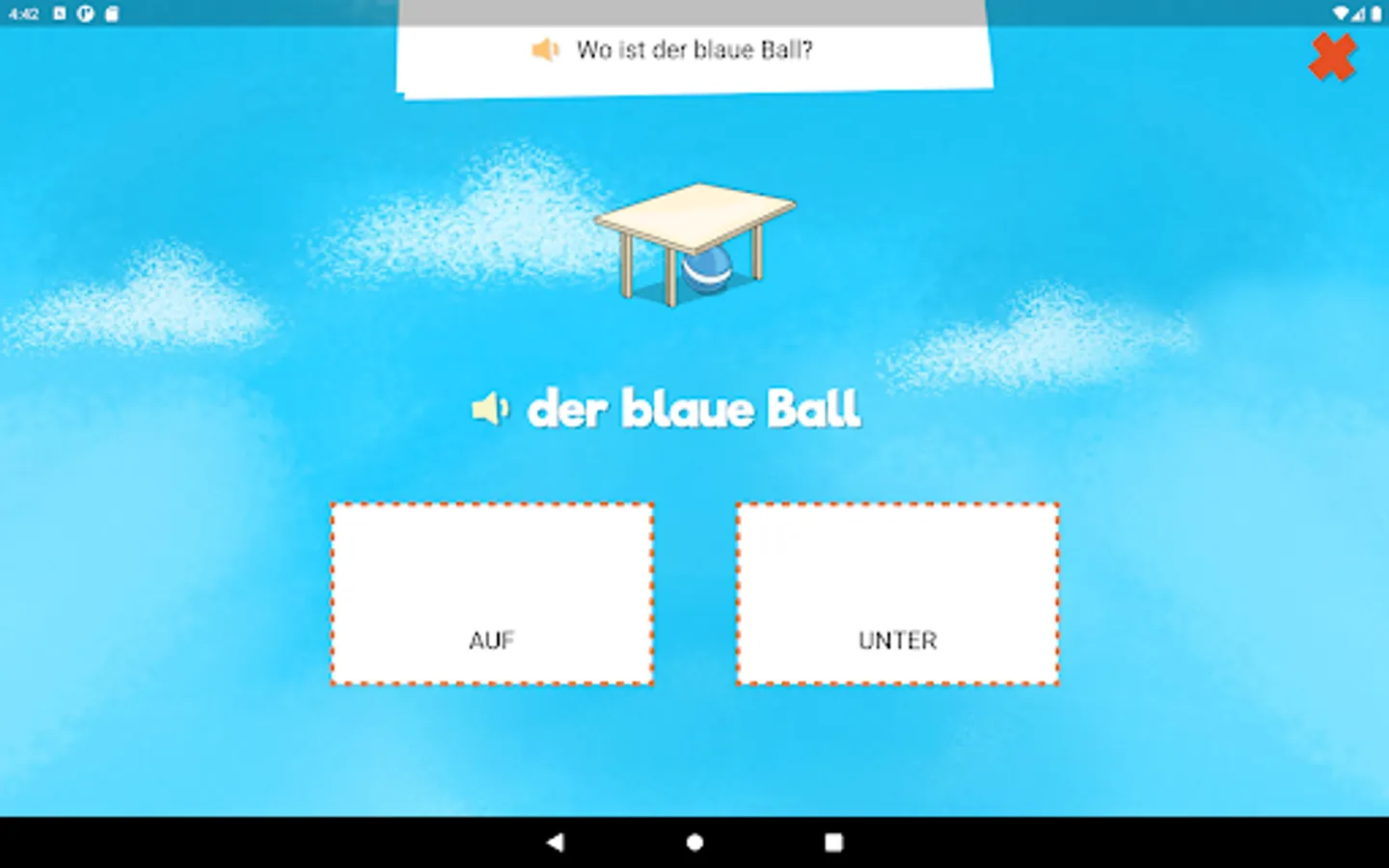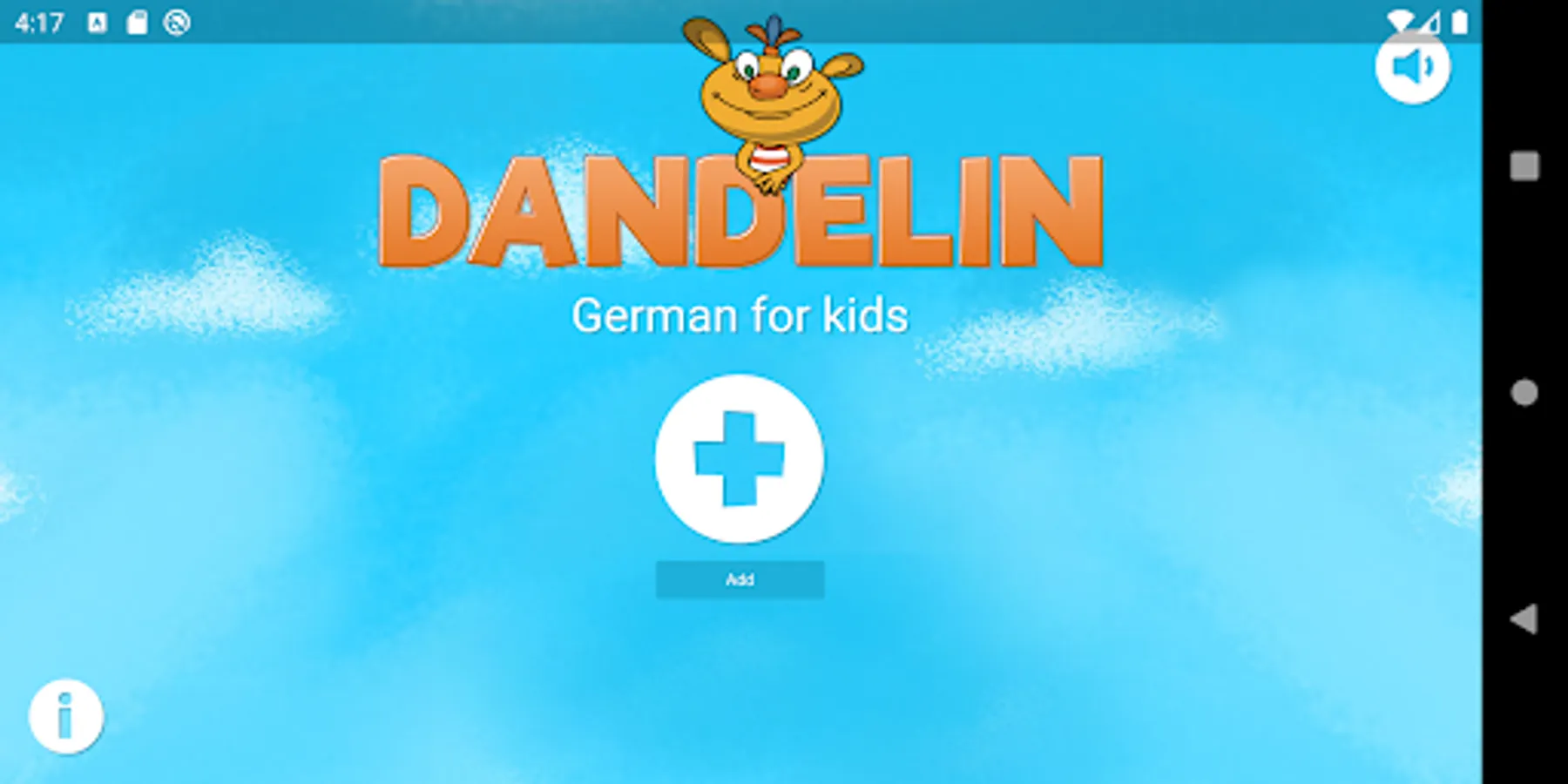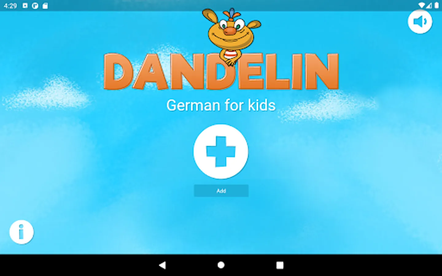 The entertaining creature Dandelin helps children aged 5 to 8 years to discover the German language independently. The topics covered include areas particularly relevant for children of this age: at home, at school and in the park. Illustrative videos introduce the vocabulary and interactive games are used to train these words directly. There are also catchy songs that strengthen the vocabulary and various rewards for completed tasks, such as creative handicraft instructions or colouring pictures. Learning the German language is fun and easy!