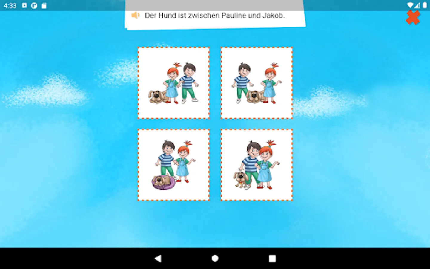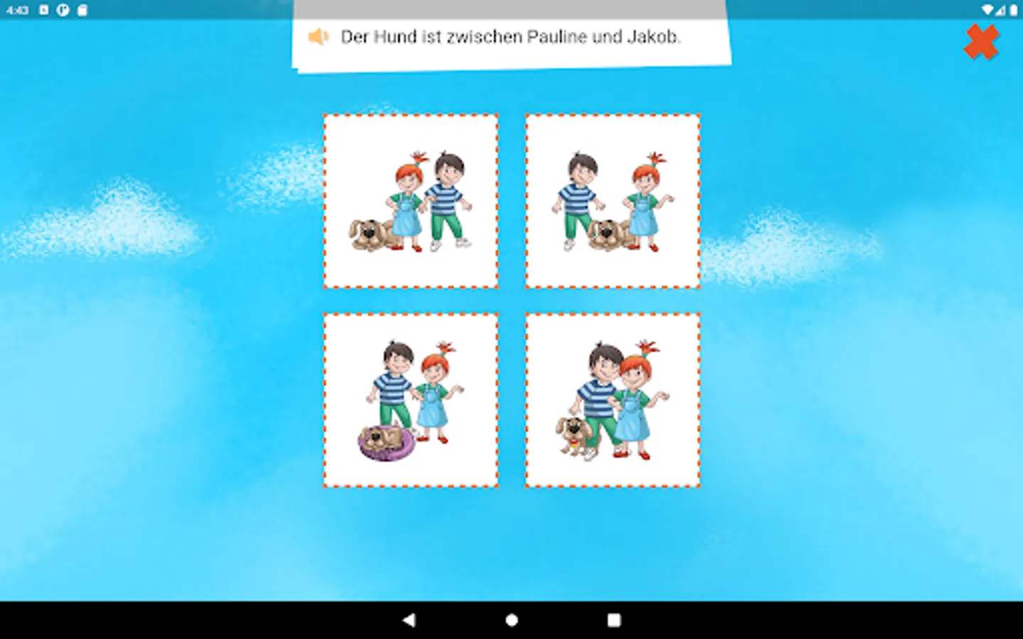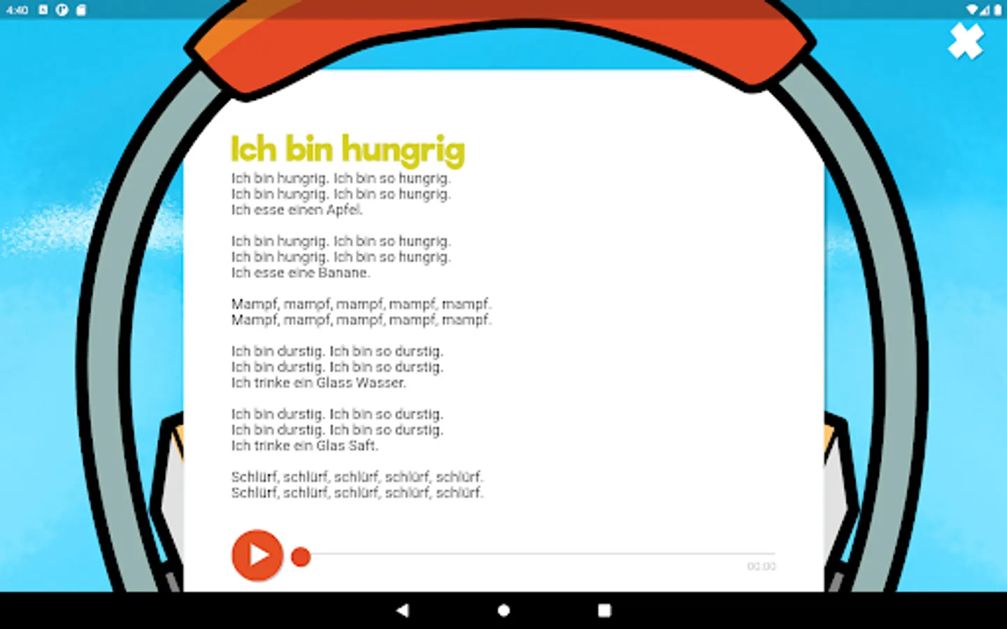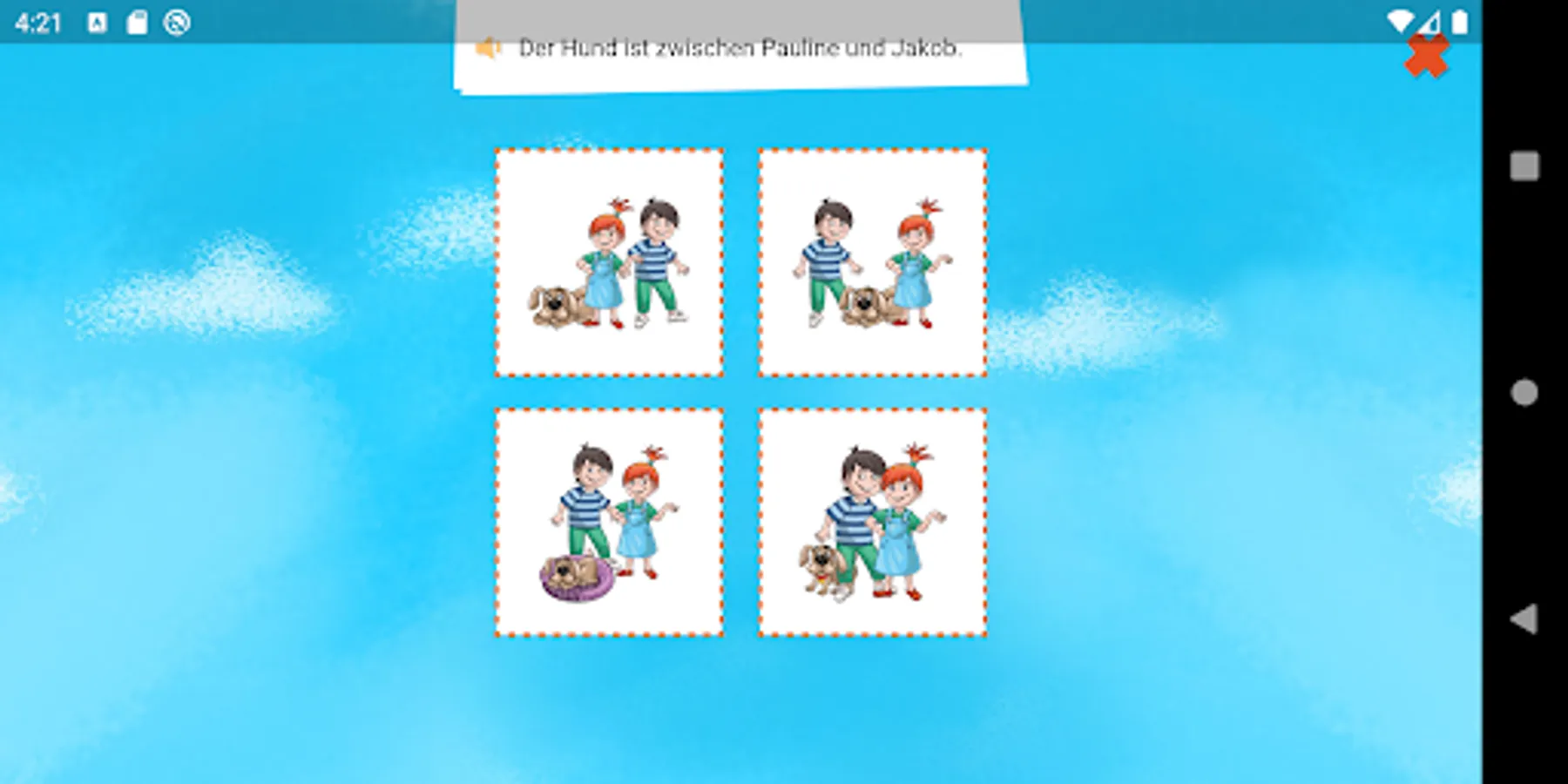 The entertaining creature Dandelin helps children aged 5 to 8 years to discover the German language independently. The topics covered include areas particularly relevant for children of this age: at home, at school and in the park. Illustrative videos introduce the vocabulary and interactive games are used to train these words directly. There are also catchy songs that strengthen the vocabulary and various rewards for completed tasks, such as creative handicraft instructions or colouring pictures. Learning the German language is fun and easy!