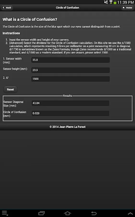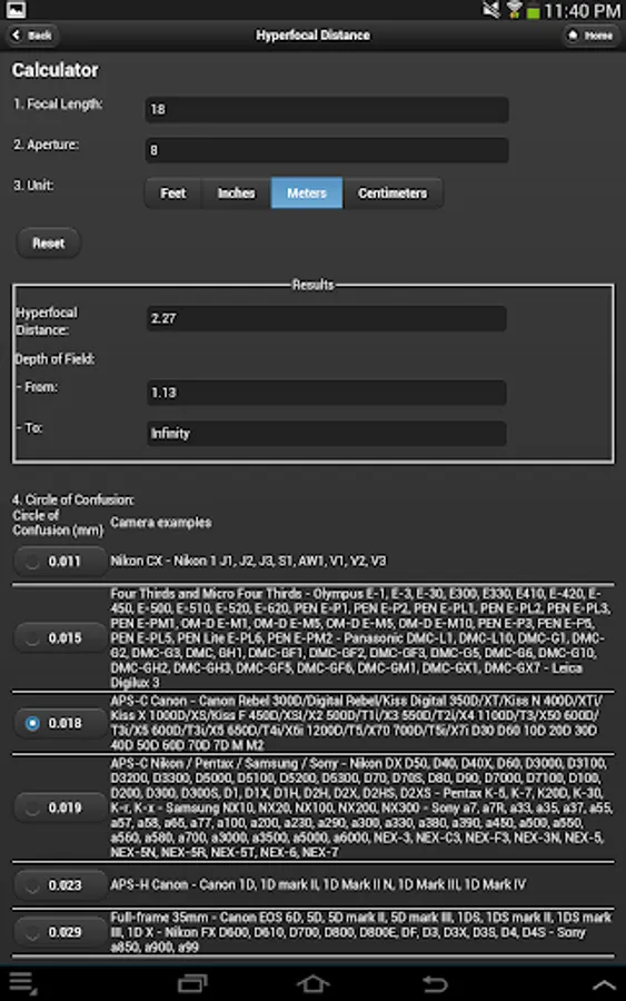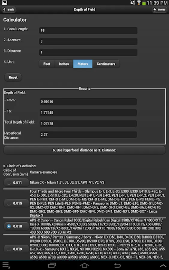 • Circle of Confusion - Is an advanced calculator mostly used as part of other calculations.